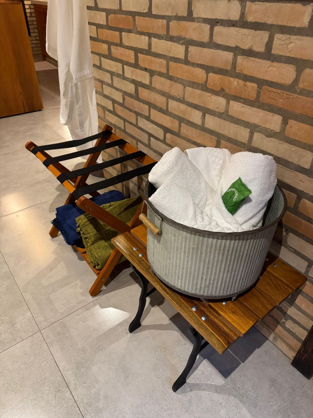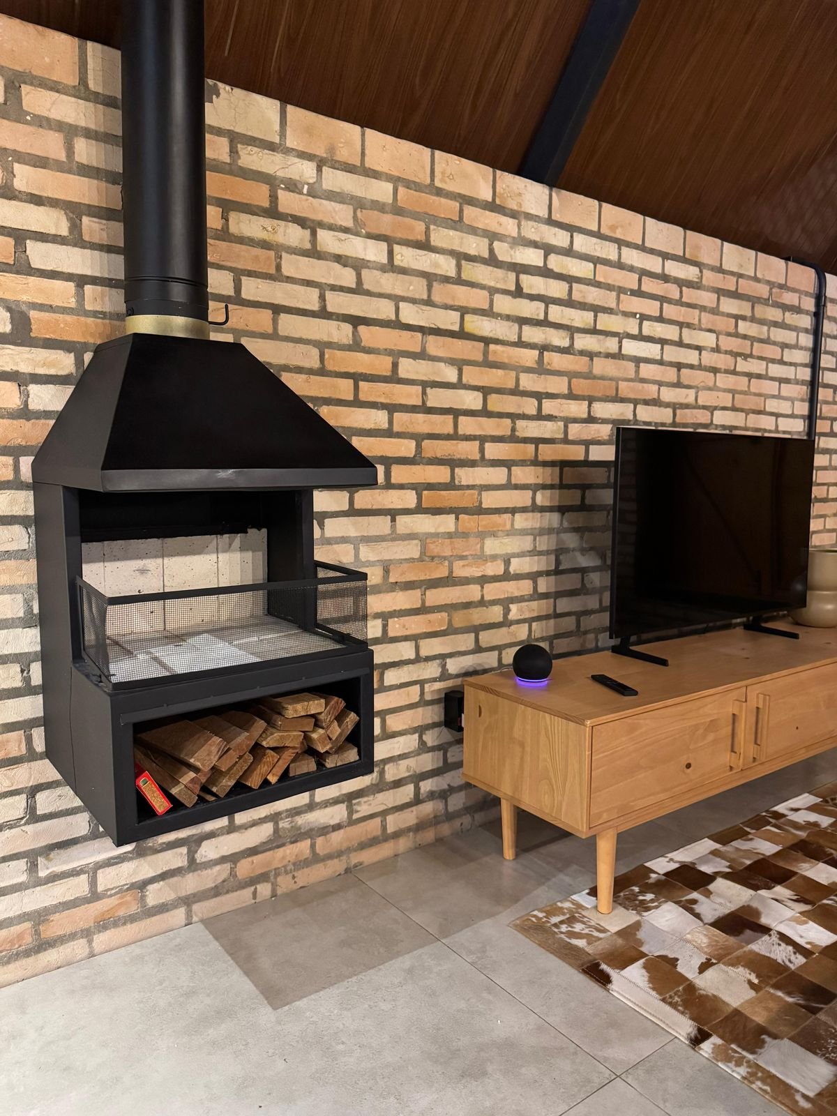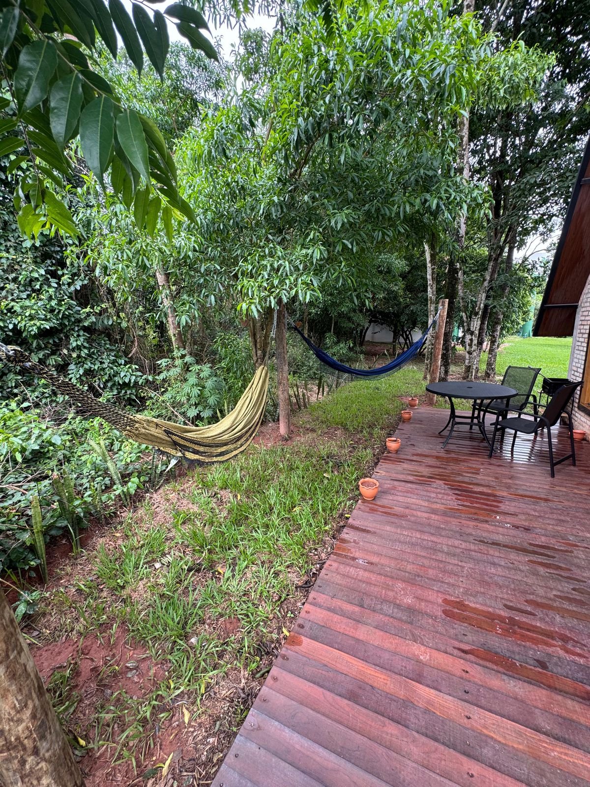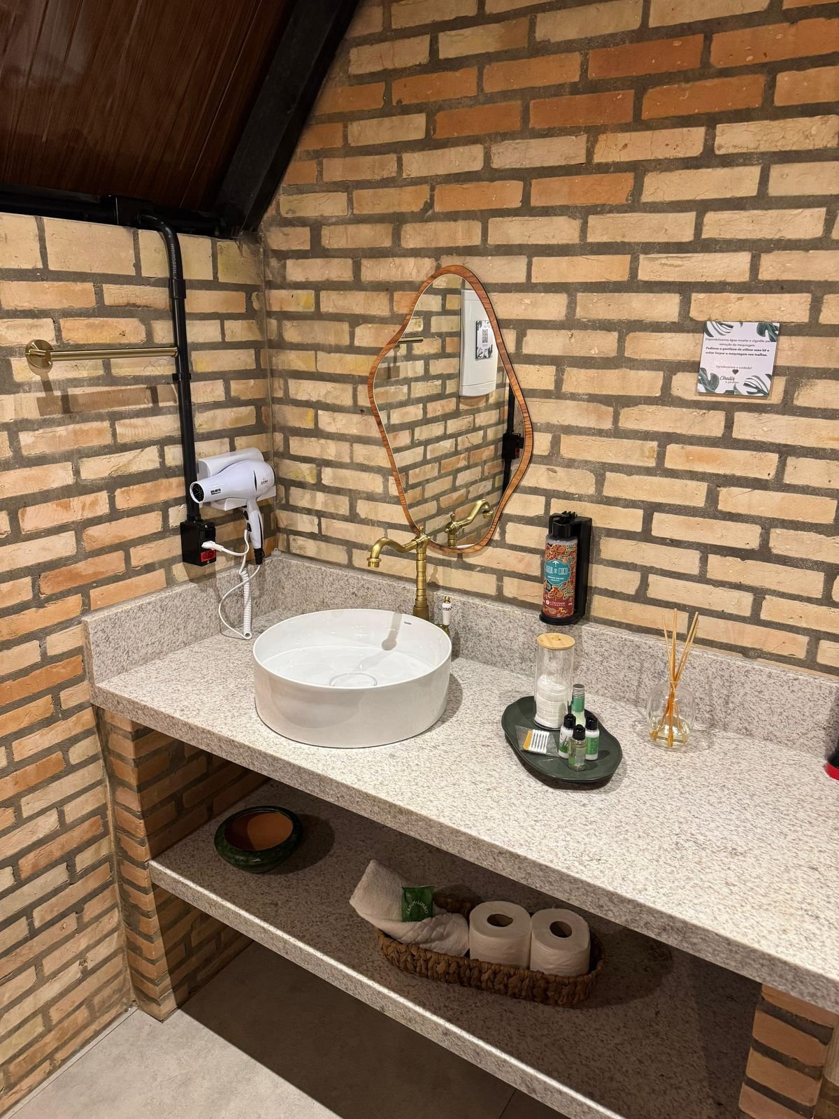Para completar a experiência, o espaço conta com um banheiro privativo amplo com acabamento rústico e elegante, uma banheira de hidromassagem para duas pessoas perfeita para banhos relaxantes à luz de velas, e uma lareira que aquece as noites criando uma atmosfera ainda mais aconchegante. A rede suspensa convida para momentos de leitura, descanso ou contemplação, tornando cada instante ainda mais especial em meio à natureza.